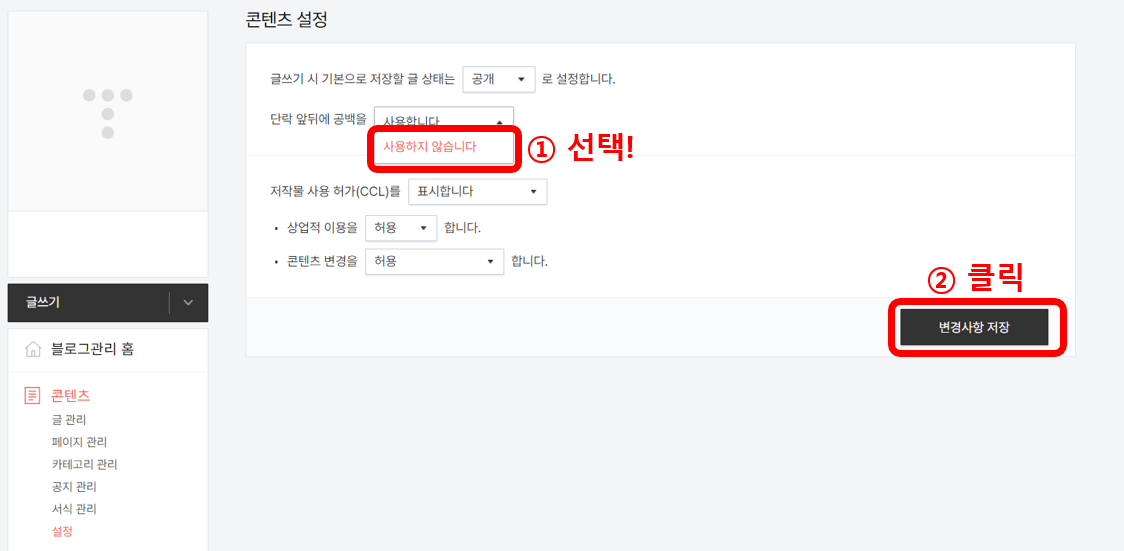 설정 변경 후에는 정상적으로 글 작성 가능합니다.